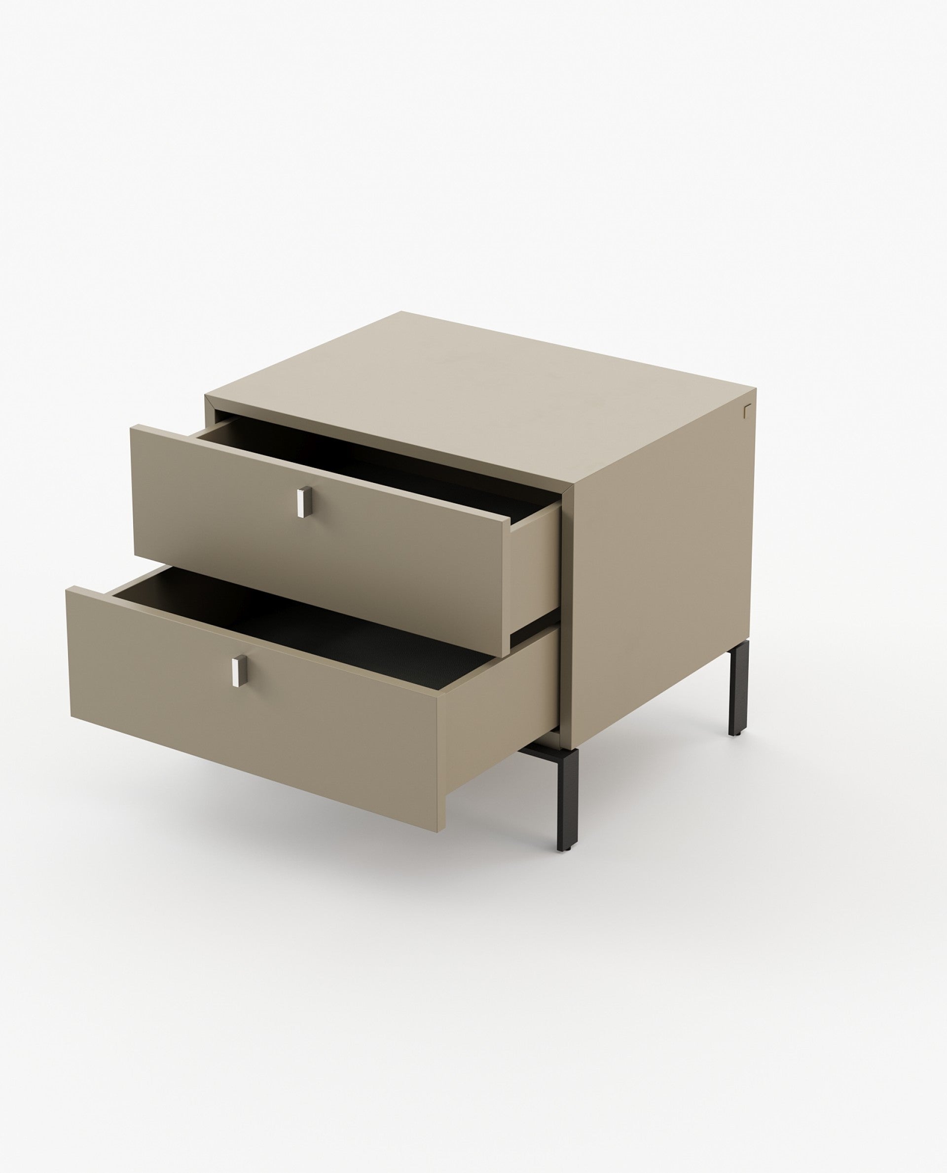 Amber este o noptieră elegantă, cu picioare, care aduce stil și spațiu generos de depozitare în orice dormitor. Silueta sa clară și bine definită se potrivește perfect cu decorul modern, fiind o alegere ideală pentru designerii care caută un echilibru între funcționalitate și eleganță contemporană.