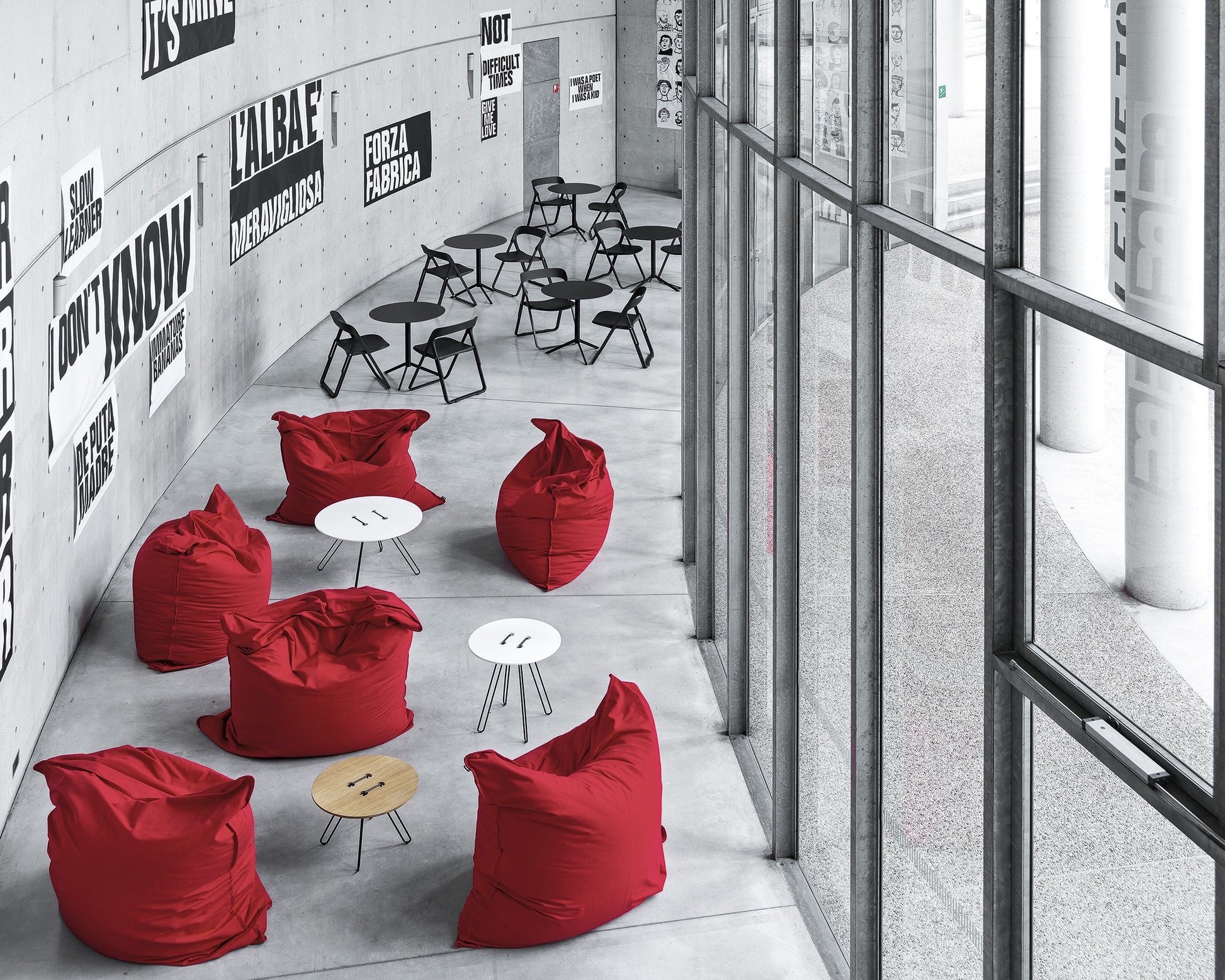 Elfo este un puf versatil care satisface dorinta de odihna a oaspetelui sau, transformandu-se intr-un fotoliu atunci cand este asezat in pozitie verticala, intr-un sezlong cand este asezat in pozitie diagonala, sau intr-o saltea confortabila in pozitie orizontala. Husa are o deschidere pentru a putea adauga bile de polistiren in caz de nevoie.
