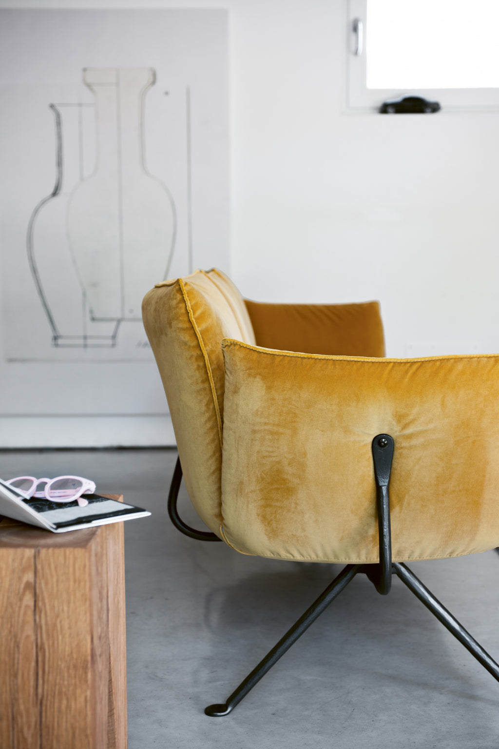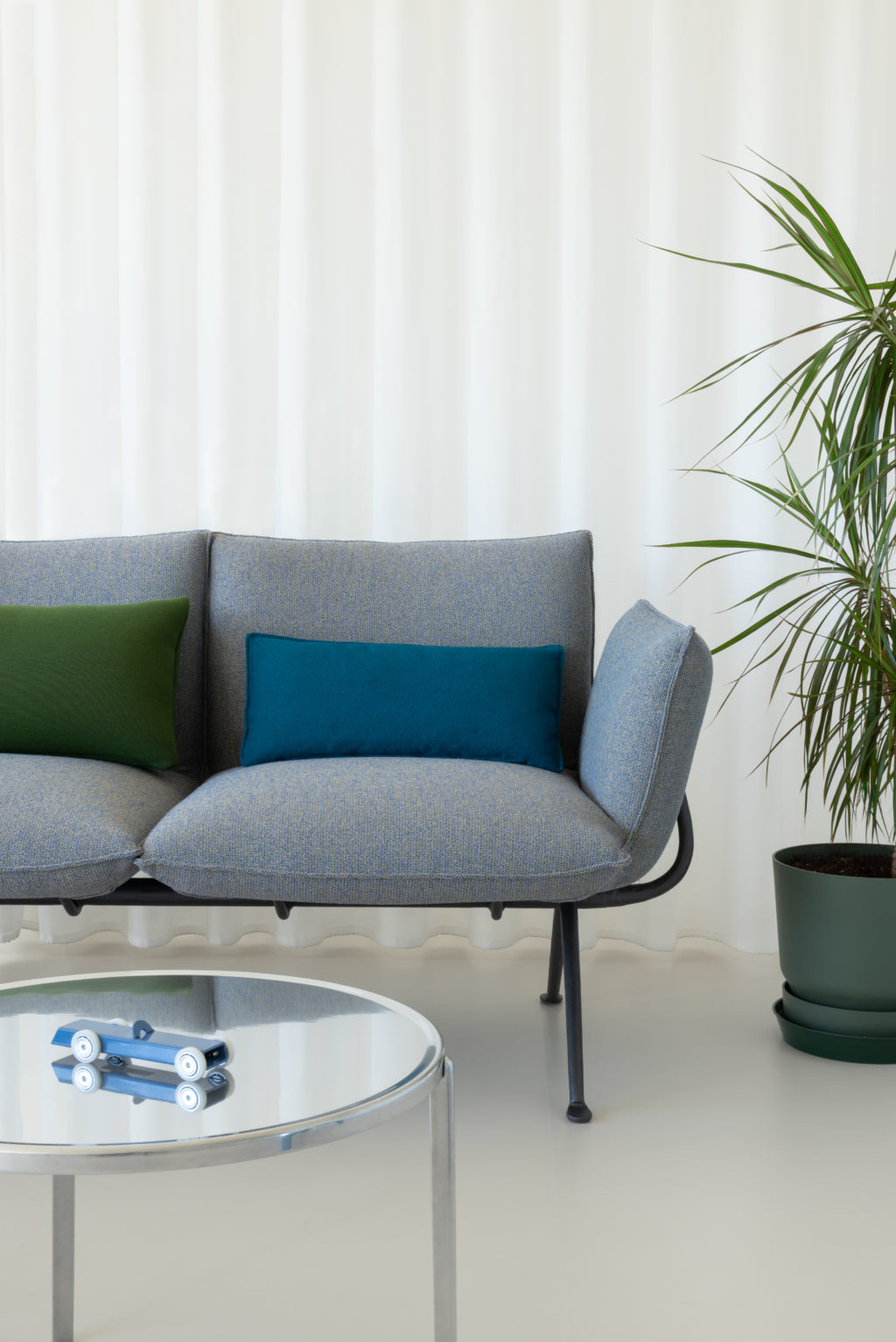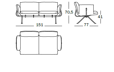 Cadrul realizat din fier forjat, galvanizat sau vopsit cu pudra de poliester. Pernele din poliuretan expandat, rezistent la foc, acoperit cu piele sau huse din material textil, complet detasabile.