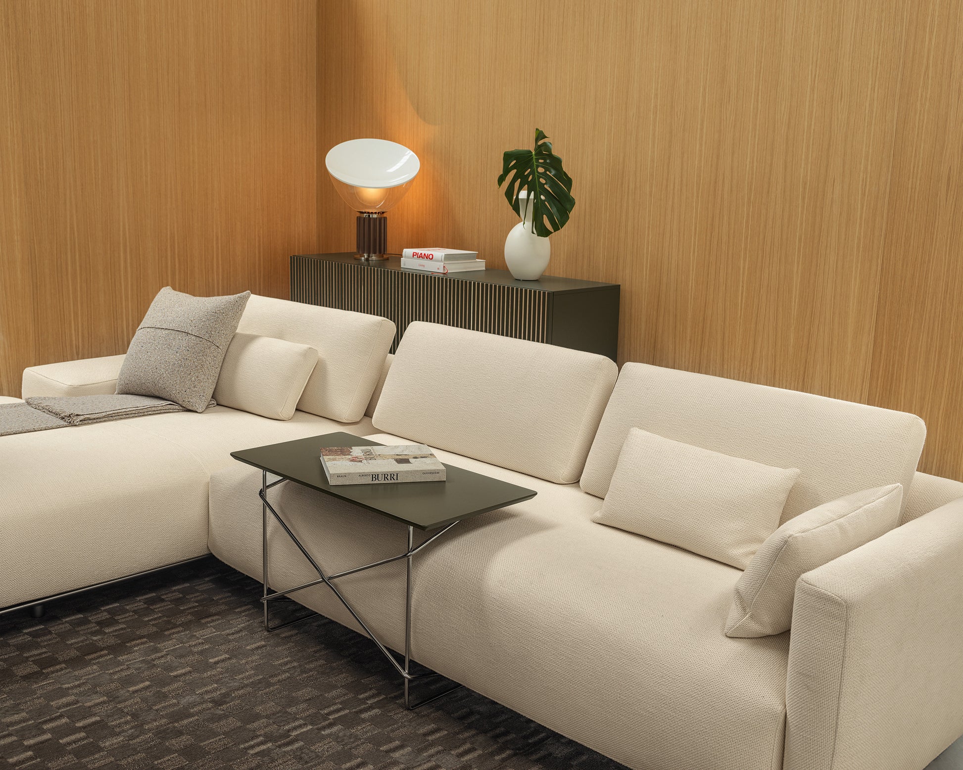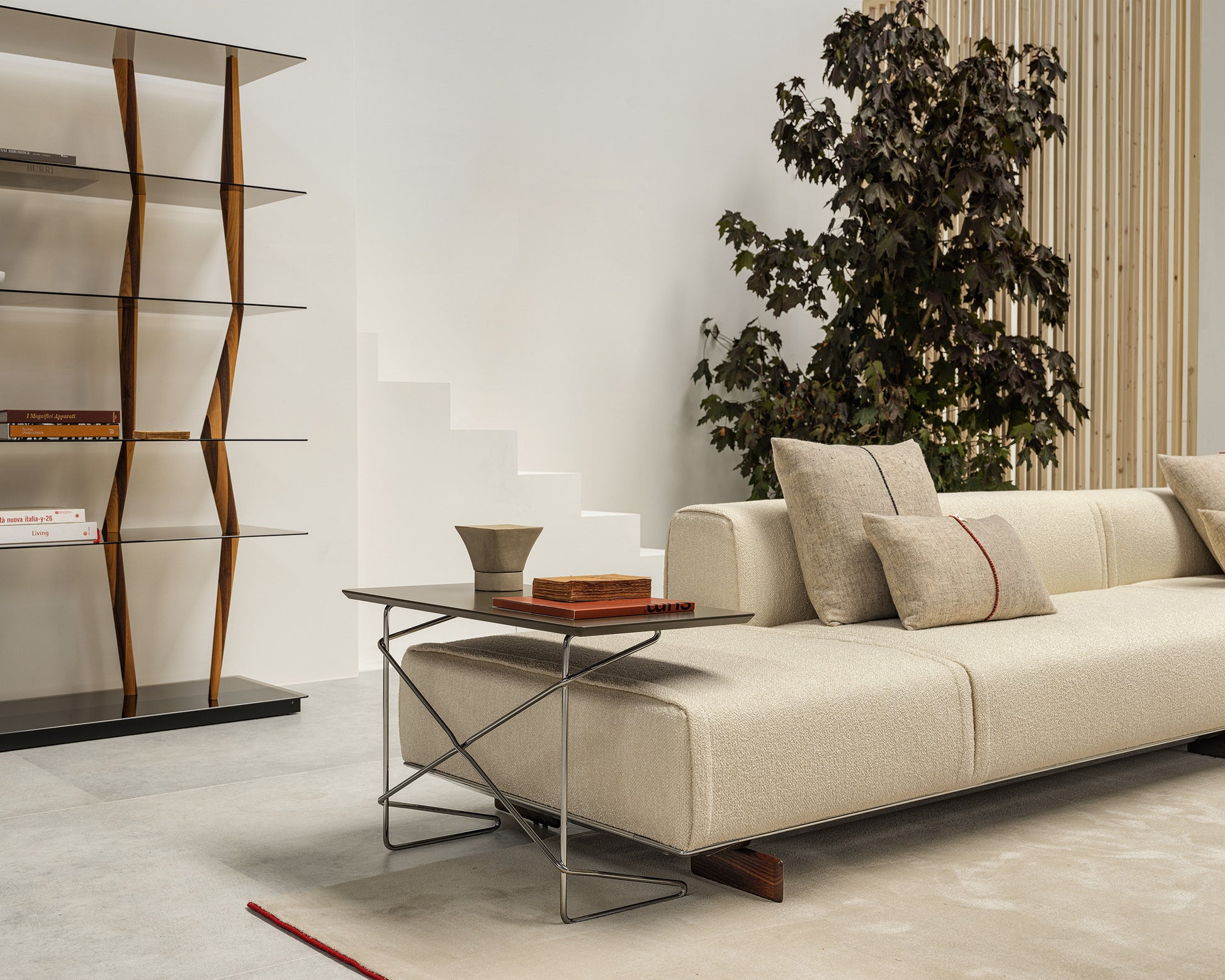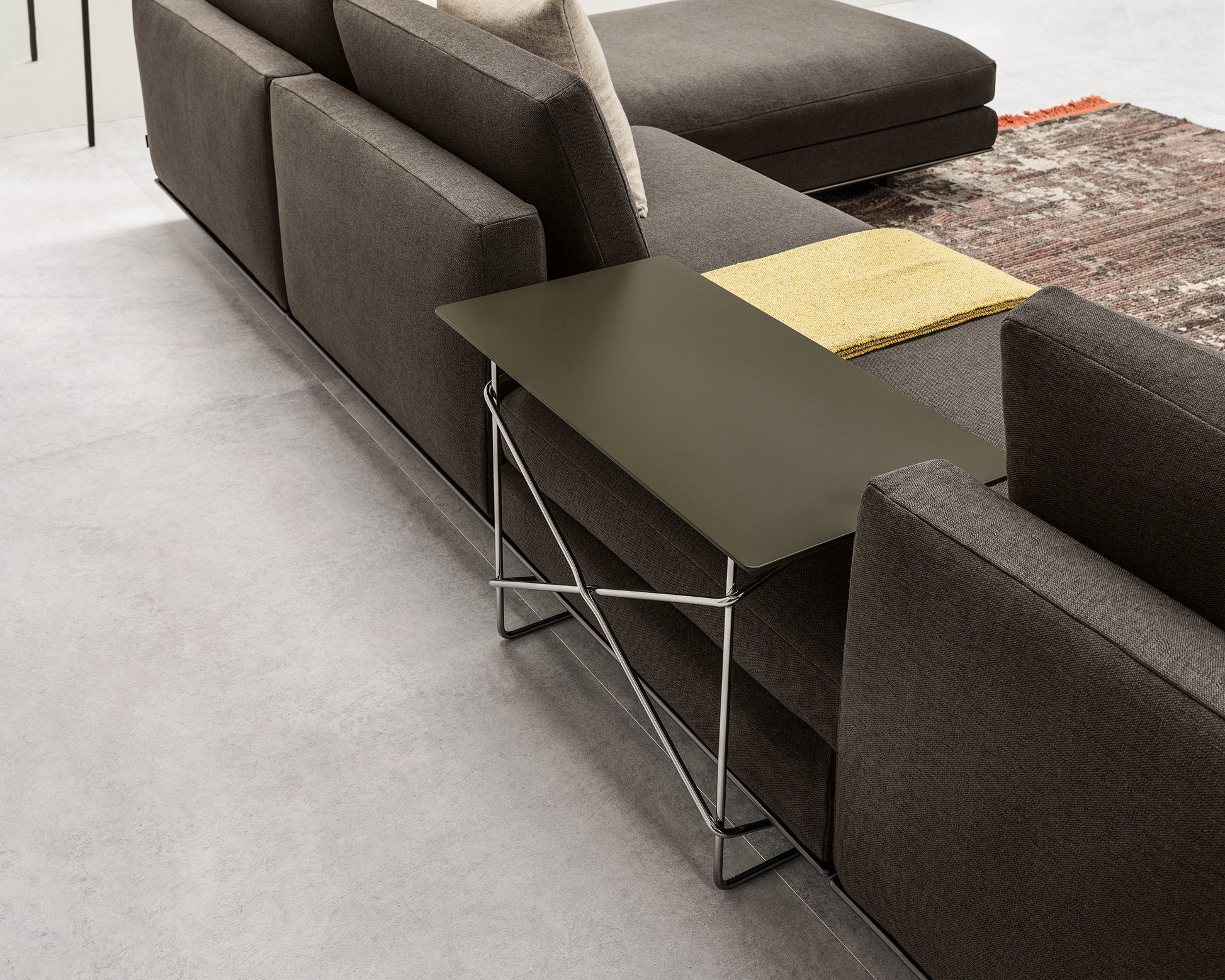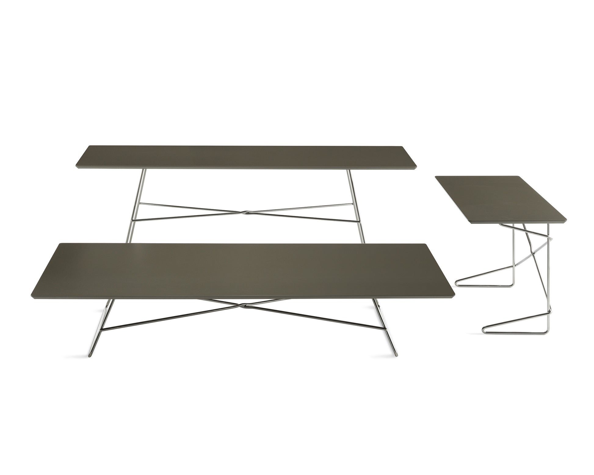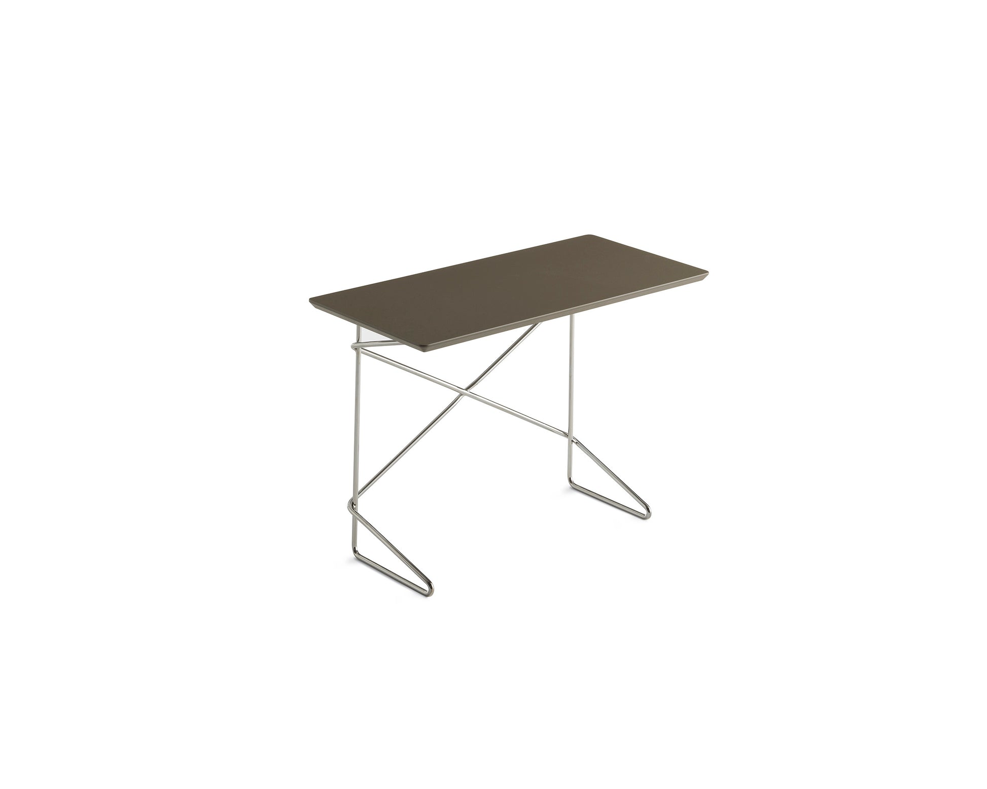 Cadru din metal cromat. Blatul este realizat din MDF vopsit lucios sau mat.