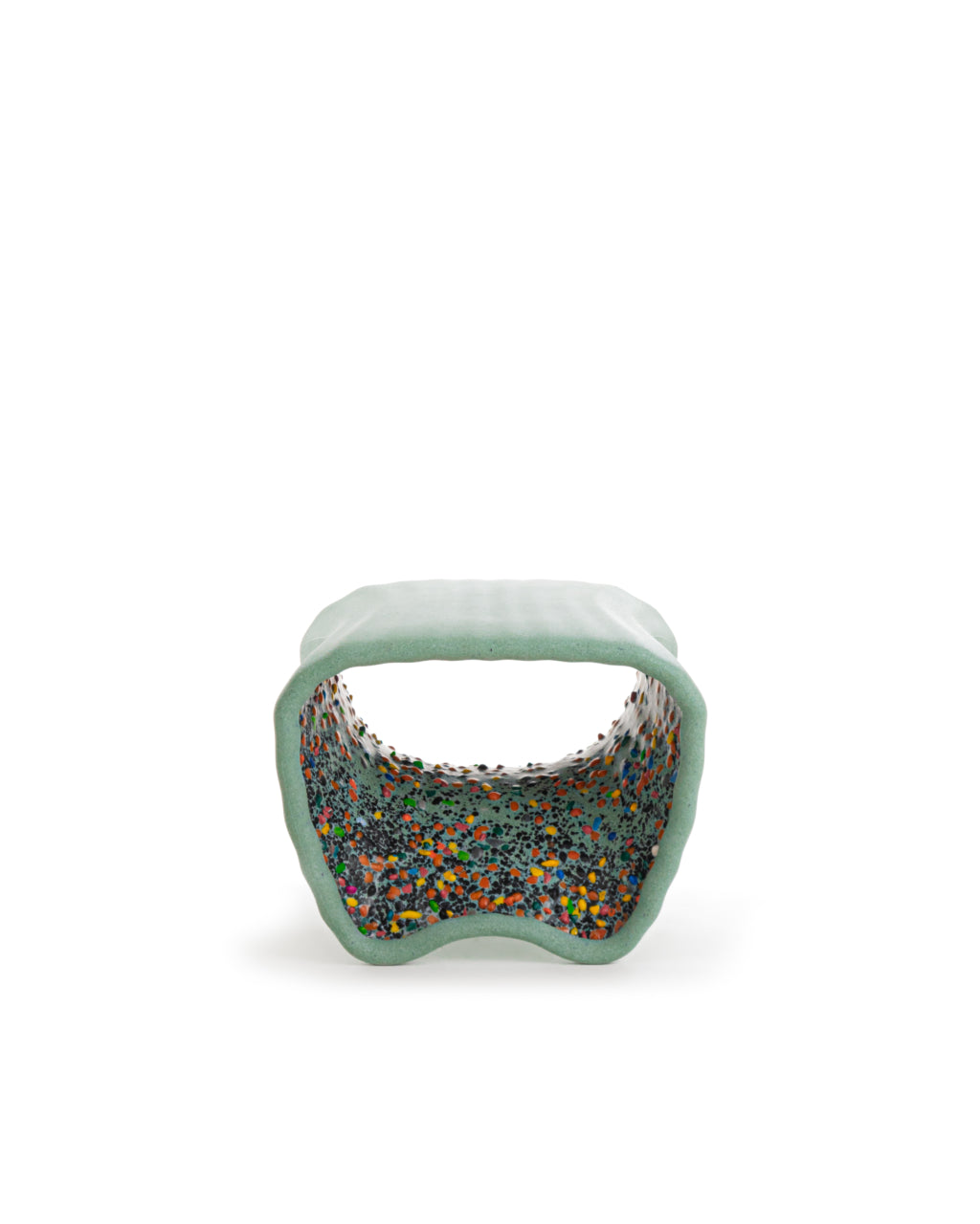 Realizata din polietilena reciclata. Fiecare piesa este unica datorita mixului de culori de pe lateral.