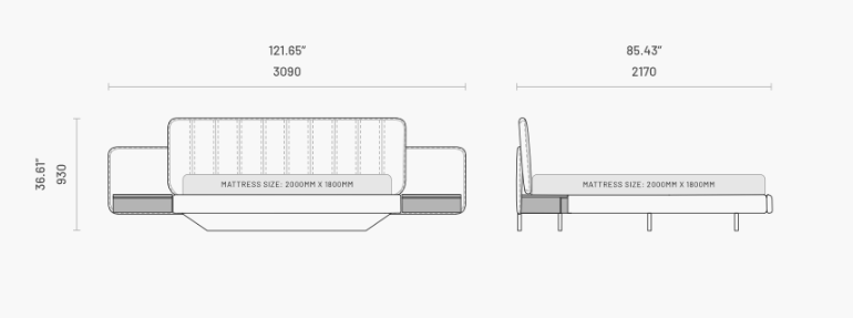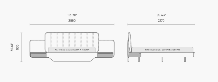 Un design contemporan pe care il iubim cu toții. Ridicat de la sol, patul Amanda se caracterizează prin tăblia sa largă tapițată, cu cusături verticale duble și noptiere din lemn integrate pe ambele părți.
