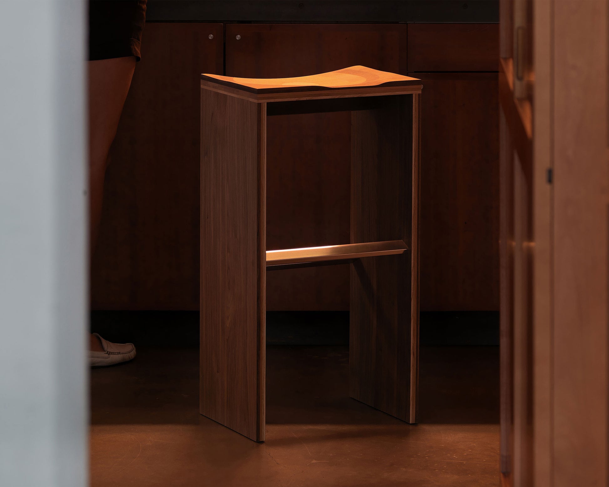 Banca Ripples a lui Toyo Ito, câștigătoarea Golden Compass în 2004, a înflorit într-o colecție de diferite piese de mobilier. Printre acestea, putem evidenția scaunul Ripples, fabricat dintr-un compozit laminat din cinci esente de lemn diferite. Forma scaunului, sculptată cu tehnologie industrială, dar complet finisată manual, se simte moale și bogată atât datorită ductilității lemnului, cât și pasiunii lui Horm pentru măiestrie. Atingeti de-a lungul suprafeței pentru a simți tranziția fără intrerupere între nuc, mahon, cireș, stejar și frasin.