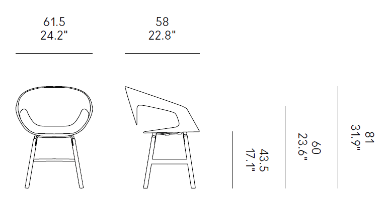 Vad este o colectie de scaune, cu diferite tipuri de picioare (lemn, tijă metalică sau tija pivotanta) și cu o carcasă din polipropilenă armată obținută prin turnare prin injecție. Corpul poate fi imbracat in piele sau captusit si imbracat in stofa, piele si piele ecologica. În Vad Wood, structura din stejar natural sau nuc canaletto face scaunul mai elegant și mai rafinat, păstrând în același timp aspectul tipic al tradiției scandinave.